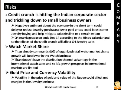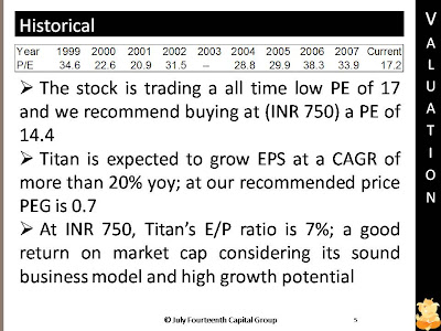 Precision engineering division is seeing a lot of growth with major contracts from Tata group cos ..im also doing a DCF on Titan..gold prices going up currently will affect sales this qtr